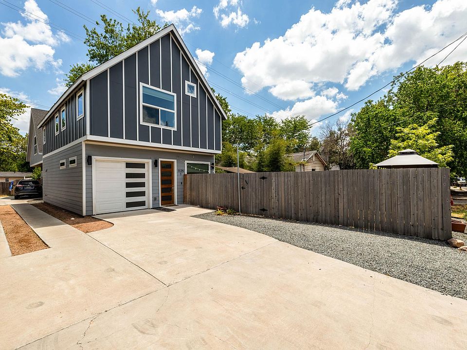 Modern, custom upgraded, energy efficient, 3 bed 2.5 bath + upstairs living home situated in the heart of the east side. Less than 5 miles from DT & 8 miles to ABIA the location doesn't get any better. Once you're in the front door you'll be greeted by modern concrete floors throughout the first floor and an open, bright, functional floor plan. Kitchen features modern stainless steel appliances and cabinet storage galore. The oversized fenced yard and deck was put in by the sellers for maximum entertaining and dog space. All bedrooms are upstairs, as well as a second living/flex space. The primary suite offers soaring ceilings, tons of windows, and a double vanity. Home comes with a 14-50 220v EV charger in garage, Tankless WH