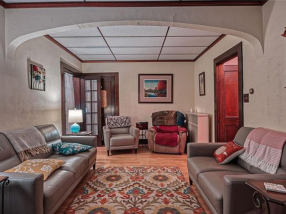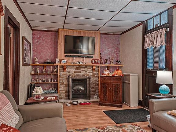 Large beautiful home with tons of character and charm, large living room with gas fireplace and warm wood floors featuring beautiful french doors leading to the sun filled office, the kitchen has been updated with a gas cooktop and stove, large island and beautiful cabinets, spacious dining room with stone feature wall off the kitchen has window walls looking out on the back yard, first floor bedroom with attached full bathroom that has been updated with designer tile, upstairs features 3 bedrooms with a kitchenette so you can use it as an in law suite, teen hang out or rent it for extra income, this house was a duplex converted to a single family home but can easily be switched back to suit your needs, an integral garage leads to the beautiful back yard with outdoor kitchen, patio and yard with pool- the pool will be left if requested. Minutes from the shopping district in trendy Millvale and close to 79 and Rte 28 so you are minutes from Downtown/North Shore or Lawrenceville/Oakland