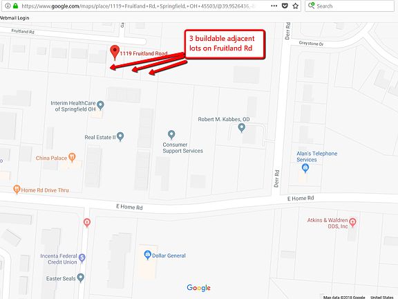 ***** Easy OWNER FINANCING with NO CREDIT CHECK ********** 1125 & 1133 Fruitland Rd are available for purchase. Act fast! Buy individually 0.2025 acre lot for $10,000 financed or $9000 cash. Buy both 0.4050 acre property for $20,000 financed or $18,000 cash. Within 5 minutes to Buck Creek State Park. Within 15 minutes to highway I-70. Falls under Springfield Corporation limits and Springfield CSD. All public utilities available. County value - $12,320 * 2 = $24,640. Conditional use as day care is possible!! +++ PROPERTY INFO +++ Parcel # (APN): 3400300025314008 and 3400300025314009 Legal Description including TRS: HOMESTEAD ACRES SUBD 15722 & 15723 Parcel Size: 0.2025 acres * 2 = 0.405 Acre(s) +++ LOCATION +++ Address: 1125/1133 Fruitland Rd, Springfield, OH 45503 +++ OTHER PROPERTY INFORMATION +++ Annual Property Taxes: $248 * 2 = $596 Access to Property: Legal and physical access from Fruitland Rd Road Surface Type: Paved Who Maintains Roads?: City Terrain Type: Flat Is property part of an HOA?: Not Verified Any Deed Restrictions? CITY RS-5 - Low density Single Family Residence district +++ Purchasing options +++ Buy individually 0.2025 acre lot for $10,000 financed or $9000 cash. Buy two lots totaling 0.405 acre for $20,000 financed or $18,000 cash. We provide Easy Financing with No Credit Check. One example would be (and of course, we are very flexible with down payment & monthly payments!!): For purchase price of $10,000 for one lot - down payment of $1,000 and $242.99 for 60 months. This is at 12.9% interest rate. This includes one time $160 document fee & $18/month for loan processing fee. +++ NEARBY +++ Closest Highways: Rt 70 (8 mile - 15 minutes) / St Rt 40 ( 3 mile - within 8 minutes) Closest Major City: Columbus OH ( within an hour), Dayton (within 40 minutes) Closest Small Town: Springfield OH (within 10 minutes) Closest Gas Station: BP (0.9 mile - 3 minutes) Nearby Attractions: Buck Creek State Park (2 mile - 5 minutes) +++ BUILDING / USAGE +++ Zoning Code: Single Family Residence What can be Built on the Property?: Single family home Single family home on each lot is possible… with a possibility of three houses in total. MH (Manufactured home) is okay. 25ft front, back & side. max lot usage 36%. Are Mobile Homes allowed on Property?: No Are RV's allowed on the Property?: No Can you Camp on the Property?: No What can you do on/near property?: Based on regulations whatever is allowed +++ UTILITIES +++ Water?: City Water Sewer or Septic?: City Sewer Electrical?: Energy Provider Gas?: Available to be ran Waste?: City pick up +++ HELPFUL INFO +++ County: Clark, OH Schools: Springfield CSD Note:Buyer is responsible for verifying all information with the County as to what can and can't be done with the property. Buyer will need to work with the County to obtain the proper permits if needed. Buyer will also need to confirm the availability of any utilities needed or serviced on the property. Seller makes no warranties or representations about the land, its condition, or what can be built on the property.