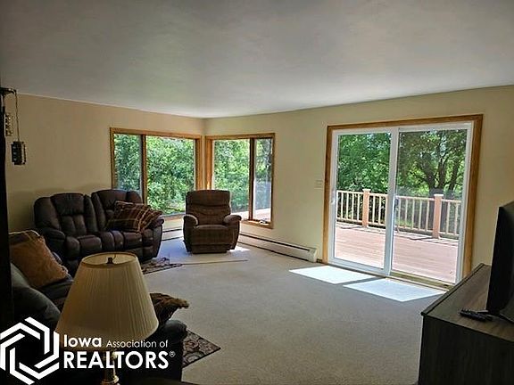 Nice ranch home located on approximately 1.5 acres m/l. Walk into the main level and see the bright living room with great view, dining room and spacious kitchen. There is also 2 bedrooms and the bathroom with walk in shower. The finished lower level has a large family room with fireplace, 2 bedrooms with the addition of egress windows, a bathroom with walk in shower and the laundry. Other features include a double detached garage, large deck, screened in lower level patio, new septic, newer heating system and a great location.