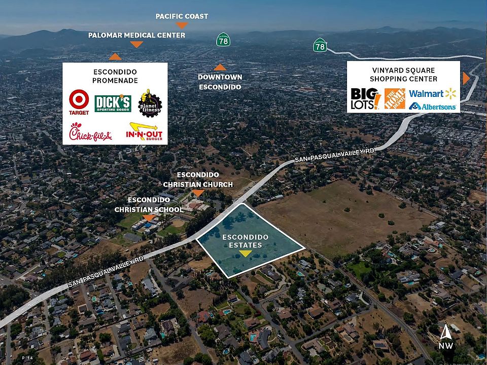 Escondido Estates is centrally located within the City of Escondido and has an approved Tentative Tract Map (No. 5639) for 20 estate lots on ± 10.28 gross acres. The site offers premium locations with all homes sites located on highly desirable cul-de-sac streets with large average lot sizes of 14,627 SF (.34 Acres). The site is offered in its current as-is where-is condition. The Seller has completed all discretionary entitlements and the Buyer will be responsible for completing final engineering and construction drawings in preparation for grading and construction.