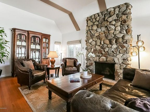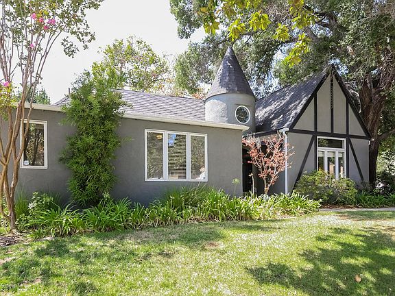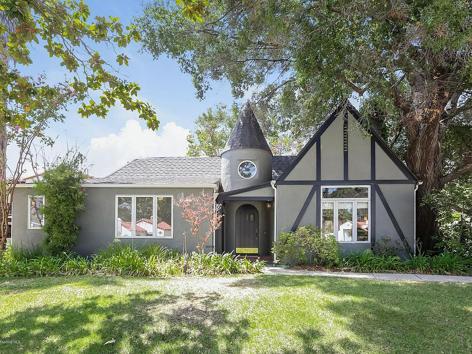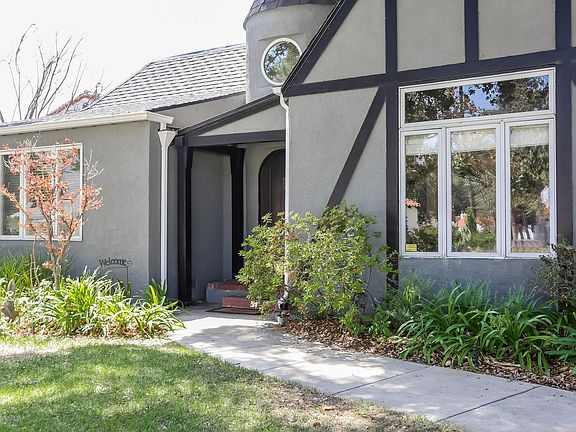 Charming Tudor Revival-style home with a guest house situated on a corner lot in the highly desirable Rossmoyne historic district. A circular entry turret and offers 3 bedrooms, 2 full bathrooms, a living room, formal dining room and a large kitchen. The magnificent living room has a vaulted & beamed ceiling and a gorgeous rock fireplace. The airy and bright kitchen is tastefully updated with granite counter tops. The formal dining room opens to a bedroom suite that can be used as a family room. A hallway with a Tiffany-style ceiling light leads you to two bedrooms with a view of the tranquil and private backyard. The main bedroom has French doors to a deck overlooking the garden. The main bathroom is updated with a spa tub and spacious shower stall. Beautiful hardwood floors throughout. Pull down stairs provide easy access to an approx. 545 SQFT attic. Central A/C. The property also includes a gated 2 car carport.