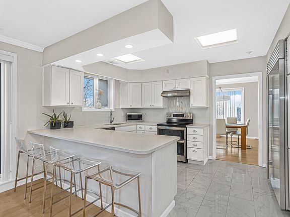 Welcome to this updated 2,421 sq ft condo in the sought after Northbrook Country, a fabulous ranch alternative! The foyer offers an impressive entrance. You're greeted by a wide hallway, beautiful marble flooring and excellent closet space. The generously sized living room is large enough to allow for living room and library space, and flows perfectly into the elegant dining room. Gorgeous light hardwood flooring and recessed lighting adorn the living areas. The renovated, sun-filled kitchen has white shaker cabinets, Sub-Zero Fridge, double ovens, quartz countertops, elegant backsplash, breakfast bar, and tons of storage. Relax in the separate family room featuring a custom stone fireplace and sliders to balcony facing gorgeous wooded grounds. The generously sized primary bedroom has a custom ensuite bathroom and excellent closet space. The additional bedroom is spacious and bright with terrific closets. Stunning updated hall bath with large vanity and walk in shower. Northbrook Country complex features outdoor pool, tennis courts, workout room, and guest parking. Garage parking #47 and storage #511 on 5th fl inc.