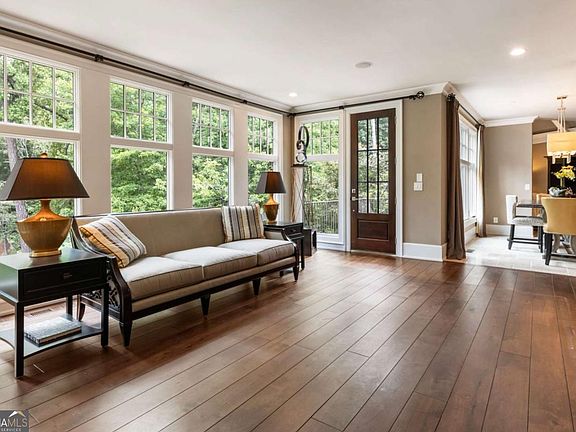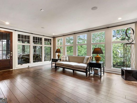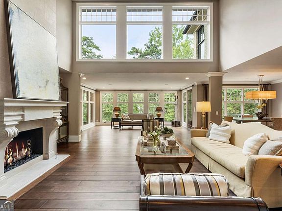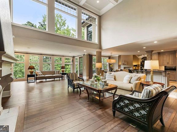 Welcome to an extraordinary residence in the prestigious Windward community, where refined craftsmanship meets modern living. This extensively renovated lakefront home has an effective age of just six years, thanks to a top-to-bottom transformation using only the highest-quality materials and finishes. Step inside through custom oak front doors into a grand two-story foyer, where a curved limestone stairway, designer chandelier, and wide-plank walnut flooring set the tone for the rest of the home. Every inch of this property has been thoughtfully curated-from the five Francois & Co. designer fireplaces to the rich limestone and Carrara marble tile, custom lighting, and home-wide audio systems. The two-story great room features a limestone fireplace and coffered ceiling with integrated lighting, leading to a bright sunroom and upper-level decks that capture stunning Lake Windward views. The kitchen is a culinary masterpiece, complete with leathered granite counters, state-of-the-art appliances, and a hidden catering kitchen/scullery with its own built-in smoker and grill system-perfect for entertaining. Upstairs, the primary suite is a true retreat: a tray-ceilinged bedroom with fireplace, a spa-inspired bathroom with heated Carrara marble floors, a glass-enclosed steam shower with eight jets, and two expansive designer dressing rooms, each with custom cabinetry and vanities. The terrace level is a full entertainment destination, boasting a bar with crystal tile, a home theater, a game room with herringbone plank floors, and a guest suite with spa bath and separate fitness room. Accordion-style glass doors open to a covered porch with Phantom screens, a stone patio with built-in firepit, and curved stairs leading to your private dock. Exterior highlights include: DaVinci slate tile roof (50-year warranty) Windsor bronze-clad casement windows Professional landscaping and stone pathways Upper and lower slate-tiled decks Soft water filtration system Mosquito misting system Two tankless water heaters & zoned thermostats Located in the highly desirable Windward neighborhood, residents enjoy resort-style amenities such as a private lake, sports park, tennis and pickleball courts, walking trails, a golf course, and social clubs. Just minutes from GA-400, Avalon, and Halcyon, this home offers the perfect blend of peaceful lakefront living and modern luxury convenience.