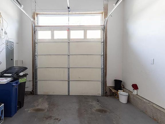 - One car garage with remote and keypad entry. Space for trash and storage.