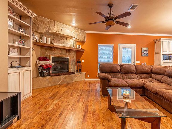 Beautiful custom built home located conveniently right outside of the loop! This home features an open concept floor plan from a spacious living area with a gas log fireplace looking into the kitchen. Kitchen features a large breakfast bar and custom cabinets. Hardwood flooring throughout. Beautiful master suite with bathroom featuring dual dressing, custom cabinets, separate shower, jet tub, and walk-in closet! Upstairs features two bedrooms and a full bathroom. Large utility area with pantry. The backyard features a covered patio great for entertaining guest, fenced yard, and storage building! Come take a look!