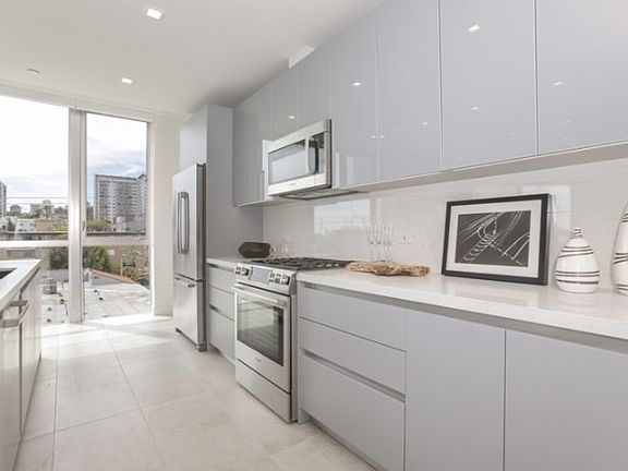 Penthouse levelLarge islandDesigner kitchenBedrooms offer privacyHigh ceilingsQuartz countertopsItalian cabinetry
