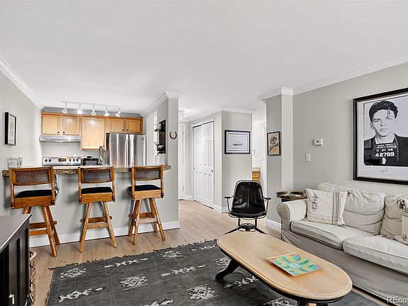 Welcome to this charming condo in the heart of Capital Hill — it’s urban living at its finest! This unit is move-in ready with new vinyl flooring, new carpet, new paint, new refrigerator and new kitchen and bathroom plumbing fixtures. The kitchen with granite tile countertops and counter seating flows seamlessly to the living room making this open concept floor plan perfect for entertaining. The spacious bedroom with a large walk in closet is filled with natural light. Residents enjoy access to a range of building amenities, including a workout facility, sauna, on-site laundry, and individual storage closets. With plenty of southern sunlight exposure, the unit also has two air conditioning units. Reserved parking spot is included. The HOA dues cover water, internet, trash & recycling. A new roof was installed on the building this past summer. The building is secure with electronic access and elevator. Enjoy the walkability of the neighborhood - a few blocks from Cheesman Park, King Soopers, Ideal Market, and dozens of restaurants and bars. Simply move in and enjoy the "Cap Hill" lifestyle!