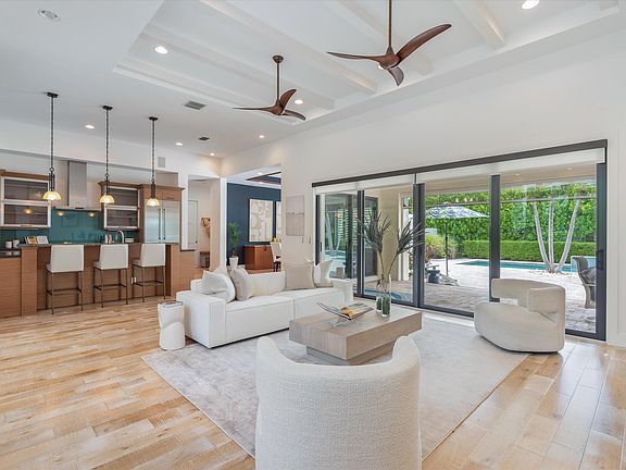 This custom coastal contemporary home is just 12 years old, situated on an oversized corner lot in the premier section of lake Ida, just 2 blocks from Lake Ida park. Featuring 3 BR 2.5 BA plus a media room (potential 4th Bed), hardwood flooring, natural gas fireplace, plantation shutters, grand ceiling heights, an expansive loggia with auto screens overlooks the east exposed backyard & 45 ft lap pool for the avid swimmer. Outdoor shower plus lush native landscape provides a private feel. This home shows beautifully, a special offer.