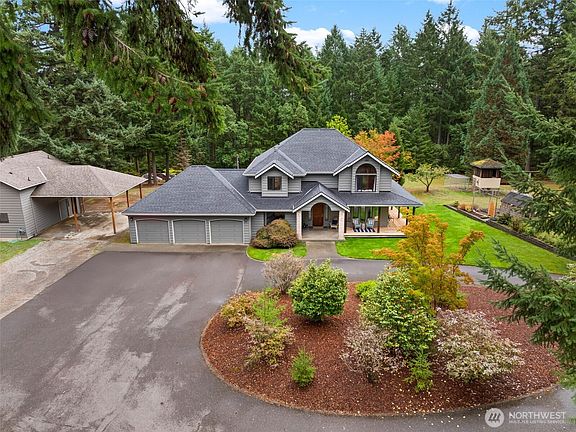 Ultra-private living on 2 flat, usable acres on Fox Island. Bring your boat, RV, and hobbies—there’s a huge shop with 12’ clearance, covered parking, a sport court, RV pad, and circular drive. This quality-crafted 4-bedroom, 2.5-bath home features vaulted ceilings, solid oak doors, and 2x6 framing. A renovated detached, 720 sq ft guest house offers space for guests, multi-gen living, or rental income above the detached garage. New roof with transferable warranty (2025), fresh exterior paint (2025), and new kitchen appliances add peace of mind. Outside, enjoy a greenhouse, pond, space for chickens and wide-open yard with endless possibilities. Just minutes to Bella Bella beach, preschools, Zoggs and top-rated Gig Harbor schools. No HOA.