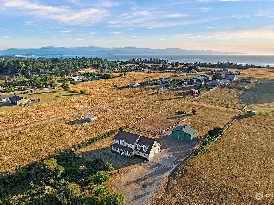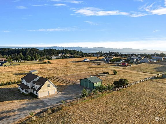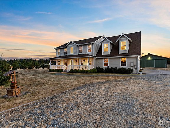 Welcome to this breathtaking equestrian home on over 3 acres! Soak in stunning sunrises while enjoying your coffee on the covered front porch or picture perfect sunsets over the Olympic mountains on your back patio. Spacious home features 4 bedrooms and 3 bathrooms as well as a library and large bonus room. Open concept kitchen is a chef’s dream with a large island and overlooking the living room. The open lot includes a riding arena and two stable barn with tack room and hay loft. Enjoy the option of a whole house generator hook up and 3 car garage. This home is move-in ready with plenty of space for all of your needs and dreams!
