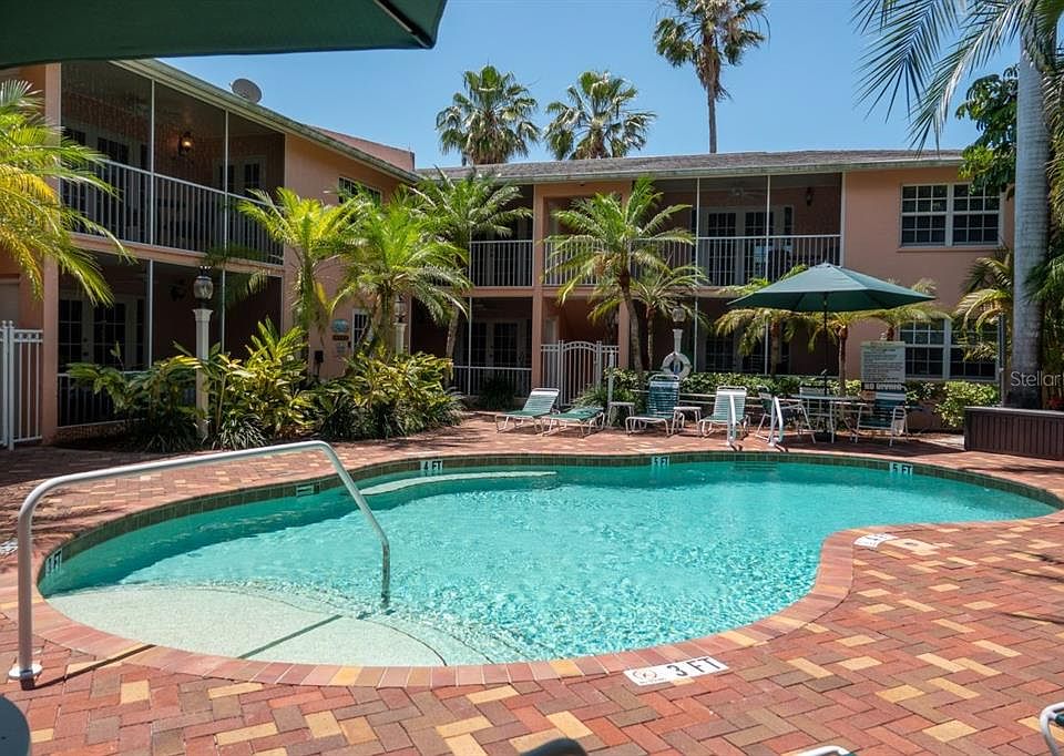 Emersed in a lush oasis-like setting, Siesta Key Inn is an enchanting experience of luxurious leisure with an island resort ambiance. The dream vacation lifestyle is a reality with full-service amenities complemented by tranquil tropical views afforded nearly every residence while being mere seconds away from the soft powdery sands of Siesta Beach. Comprised of eight one- and two-bedroom units, impeccable improvements and design aesthetics throughout meet even the highest standards. Each residence includes a full kitchen, quality finishes of Quartzite countertops, soft-close wood cabinetry, Moen and Kohler fixtures, Jacuzzi jetted tubs, upscale crown molding and LED lighting, and an inside washer and dryer to establish a true sense of home. Feel rest assured that Siesta Key Inn has been built to exceed expectation for security and comfort with prestressed concrete walls and floors with whisper mat rubber membranes between the floors, Pex plumbing, multiple tankless water heaters with natural gas and multiple electric water heaters, open-cell foam insulation in the attic, Square D electric panels, Eco-flow water filtration systems, and hurricane impact windows and doors. The property has been thoughtfully designed for you to enjoy opportunities of serene indulgence where you can lounge by the expansive pool boasting therapy jets and waterfall features, a nearby grilling area, gazebo and bike rack. To make your beach adventures all the better, there are beach chairs, umbrellas, towels and coolers to use as well. Explore the sights and attractions of Siesta Village just beyond the beach and journey over the bridge to fall in love with downtown Sarasota.
