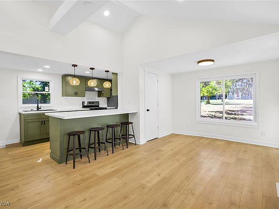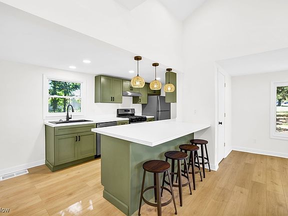 Large windowsGleaming cabinetsFresh countertopsBreakfast barBrand new stainless appliancesAdjoining dining nookPlush new carpet