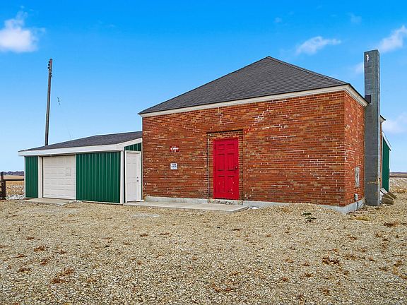 Unique property situated on approximately 0.30 acres surrounded by open farmland. This parcel includes multiple structures offering flexible space for storage, workshop, or hobby use. The newest addition (2015) features 6-inch concrete floors, 100-amp electric service, a furnace, and a roof replaced in 2025. The oversized 2-plus car garage includes an additional enclosed 11-foot rear extension. Connected to the garage is the original 1900s brick building, which includes a walk-up loft area open to the lower level and a wood-burning stove. The private well was installed approximately 6-7 years ago. Buyer to verify zoning, intended use, and any local permitting requirements.