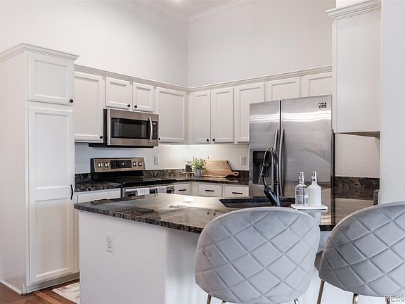 Welcome home to this spacious, updated and sun-filled 2 bed/2 bath condo, located in the desirable Turtle Creek community, within the Cherry Creek School District! Step into this upper-level residence with open floor plan and high ceilings. The modern kitchen features granite counters, stainless steel appliances, convenient breakfast bar and stylish copper sink. The kitchen opens to the adjacent dining area and large living room featuring a cozy gas fireplace and private balcony for year-round enjoyment! You will love the relaxing primary suite with vaulted ceilings and plenty of room for a king bed. The large en suite bathroom is updated with a double sink vanity with granite counters, new lighting and large soaking tub. This condo also features a second full bath and generously-sized second bedroom. Multiple parking options are available for you and your guests! Your private 1-car attached garage is conveniently located on the ground level and an additional off-street space is available on your driveway. Several guest spots are available right out your front door. This community is ideally located with quick access to both I-25 & 225 for easy commuting and Chatfield State Park, Costco and Cherry Creek Shopping Center are all within a few minutes drive The Turtle Creek community is well-maintained and features a spacious workout room and heated community pool. New park ("Arcadia Park") coming soon across Alton with playgrounds, dog parks and jogging paths for your enjoyment! With in-unit washer/dryer, attached garage, private balcony, central heat/AC and lots of storage, you have everything you need at an affordable price! Schedule a showing today!