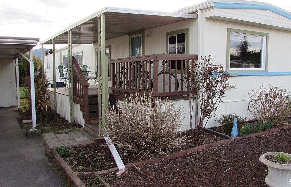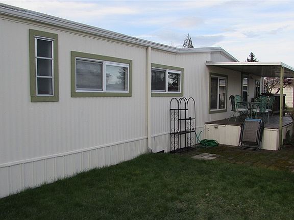Living the good life in Mountain Villa Estates. Over fifty five park centrally located in Downtown Enumclaw. Wonderful Community with a Club House and plenty of Park sponsored activities. Home features fresh exterior paint and is move in ready. Light and bright country kitchen along with an eating bar. Living room features vaulted ceilings along with three bedrooms down the hall. Efficient heat pump will keep you comfortable through all the seasons.