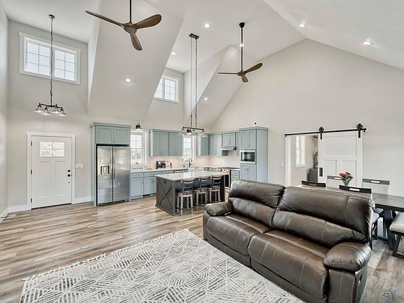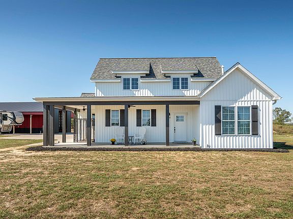 Welcome to this stunning farmhouse-style retreat, built in 2023 & perfectly nestled on 14.8 acres of open land just minutes from town. Tucked behind a gated private drive, this fully fenced property offers peaceful country living with modern comfort & convenience.From the moment you arrive, you'll be charmed by the wraparound front porch & covered back patio--ideal spots to relax & take in the views, sunsets, & serene surroundings. A small wet weather pond adds to the natural beauty and tranquility of the land.Step inside to an inviting open floor plan w/soaring vaulted ceilings, spray foam insulation, & an abundance of natural light pouring in through large windows & glass doors. The heart of the home is the kitchen, featuring custom cabinetry, sleek granite countertops, farmhouse sink, stainless steel appliances including a gas cooktop/oven, & large stained center island perfect for gathering with family & friends.The cozy living room is anchored by a wood-burning fireplace, adding warmth & character to the space. The primary suite is complete w/gorgeous en suite bathroom showcasing a stained dual-sink vanity topped with quartz, a spacious walk-in shower with dual shower heads, a private water closet, linen closet, & large walk-in closet. The second bedroom is comfortably served by a well-appointed hall bath.Additional highlights include large laundry room w/extra shelving & broom closet, water softener system, & thoughtful touches throughout that combine style & function.Outdoors, the property is fully equipped for your country lifestyle with a 30' x 48' shop featuring 16' sidewalls & doors, plus 2 lean-tos that expand the total covered space to 50' x 48' under roof. The shop is perfect for storing equipment & working on projects. You'll also find a chicken coop, RV hookup w/parking pad, & new private well. This is country living at its finest, secure, spacious, and full of charm, where you can enjoy quiet evenings, beautiful sunsets.