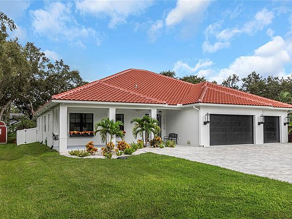 Custom-Built Elegance with Luxurious Touches Throughout Discover timeless sophistication in this exquisite two-year-old custom-built residence, designed to blend luxurious comfort with effortless style. From the moment you enter, you’ll be captivated by the attention to detail and high-end finishes throughout. The expansive primary suite offers a private retreat, highlighted by an oversized wet room with a rain shower, bench seating, and a deep soaking tub—perfect for unwinding. Step directly into a Sex and the City-inspired custom closet that balances function with fashion. Ideal for entertaining, the gourmet kitchen boasts top-of-the-line Café Collection appliances, double wall ovens, and a massive 9-foot island with quartz countertops (which also continues throughout the entire home) that seats six comfortably. Open-concept living continues through collapsible patio doors to the walk-out lanai, where a heated saltwater pool and hot tub await. With both gas and electric heaters, you’ll enjoy year-round relaxation in your private outdoor oasis. The pool also features modern conveniences including automatic refill when water levels are low, auto-dump to prevent overflow during heavy rains or hurricanes, and dual control panels—one conveniently located in the primary suite and another at the pump for ease of maintenance. The guest wing features three generously sized bedrooms, a full bath, and a well-appointed laundry room with direct access to the oversized 3-car garage, which includes walk-up attic access for convenient storage. Charming gas lanterns at the front entrance offer a warm, inviting glow, while hurricane impact windows and doors provide peace of mind throughout. Additional upgrades include a 16-channel security camera system, a hardwired fire detection system, and an underground drainage system, all supported by a GENERAC whole home generator for your piece of mind. The home is also fully prepped for an outdoor kitchen, with existing hookups for gas, electric, plumbing, and a vent hood. Less than one mile to the Gulf of Mexico and outside of an HOA, this home offers added security, sitting 14.5 feet above flood level and in flood zone X which means its location is outside of the flood plains. This great home and location provides both confidence and savings with no flood insurance required. This isn’t just a home—it’s a lifestyle of elevated comfort, thoughtful design, and modern convenience