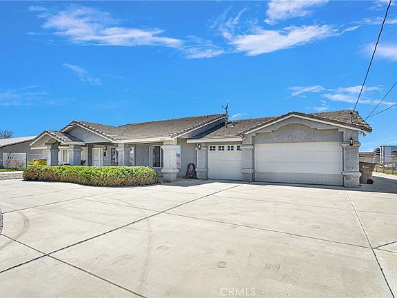 LOOKING FOR A PLACE TO CALL HOME?........We've got just what you need. Welcome to Hesperia this custom built home is situated on an acre+, circular driveway, completely fenced with electric gate, landscaping, out back fruit trees, large shed and 30x30 workshop slab with maintenance pit. This charming single-story ranch-style home offers a perfect blend of comfort, style, and views of the mountains. With 3 bedrooms, 3 baths plus office and over 2200 sq/ft this residence is a haven for tranquility and relaxation. As you enter, you'll be greeted by a spacious living room adorned with large picture windows. The natural light floods the space, creating a warm and inviting atmosphere. The formal dining room area is perfect for hosting gatherings and enjoying meals with loved ones. The family room boasts a cozy fireplace, making it an ideal spot to unwind and enjoy. Step outside to the large covered patio, offering an excellent space for outdoor entertaining and enjoying the California weather. The expansive 1 acre back yard, featuring fruit trees and ample space for various outdoor activities. Workshop slab is ready with BONUS featuring a maintenance pit for your oil changes or work needed under vehicles or RV, 30 x30 slab. Yours to finish. Huge shed is also on property,This rare find includes a separate laundry room for added convenience and triple garage, storage and workbench. Garage has direct entry to the house, ensuring ease of access. What makes this property truly exceptional is its unique combination of a ranch-style home and a generously sized flat yard. The owners have meticulously maintained this residence with love and care for the past 30 years, creating a home that radiates warmth and character. Enjoy the close proximity to two parks, hospital, shopping and a wonderful elementary school nearby. This home offers not just a dwelling but a lifestyle of comfort. Don't miss the opportunity to make this special property your own!