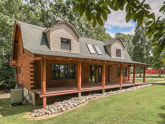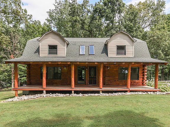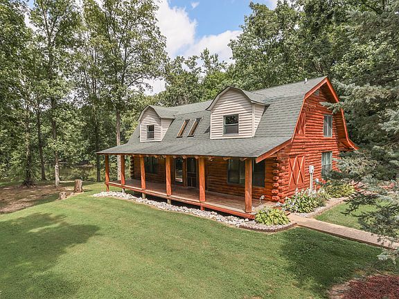 Imagine 2.33 manicured acres overlooking a private stocked pond with views of woods and country pastures.  This is what you can experience every day in this striking 4 bedroom true log home with walk-out basement.  The deep and spacious covered front and back porches are the perfect place to enjoy complete privacy, quiet nature sounds and beautiful, serene surroundings.  A skylight lit great room welcomes you in to the open floor plan with well-appointed kitchen filled with counter space and cabinets.  The breakfast bar is perfect for quick sitting or serving meals.  The main level is completed with a primary bedroom/bath and laundry room.  Upstairs you find family bedrooms, loft space and full bath.  The walk-out finished basement is suited for family, theatre or recreational rooms.  Home has been updated with many new features to provide years of low maintenance.  A 1,500 SF pole barn sits across from the circle driveway and provides garage, work and storage space. Natural energy efficiency and low property taxes make a home and property like this not only desirable but affordable too!