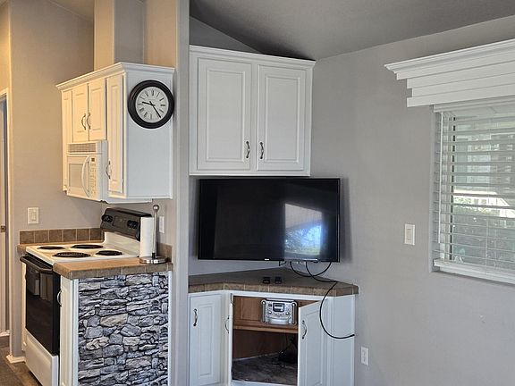 Ample cabinetryVaulted ceilingsSpacious carportDouble sink