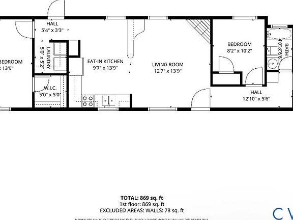 - Total interior livable area: 864 sqft