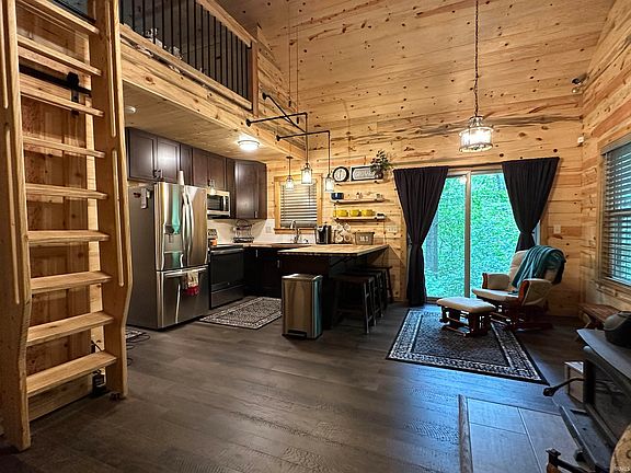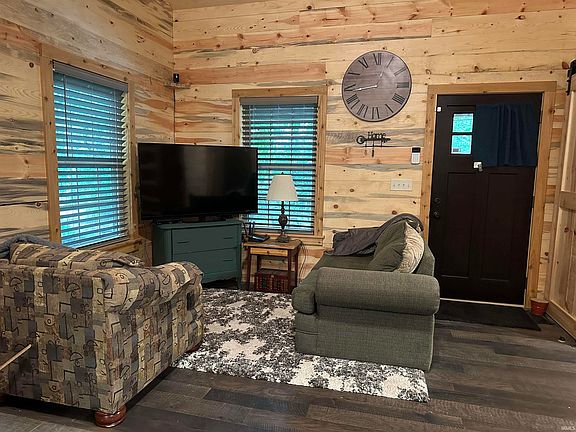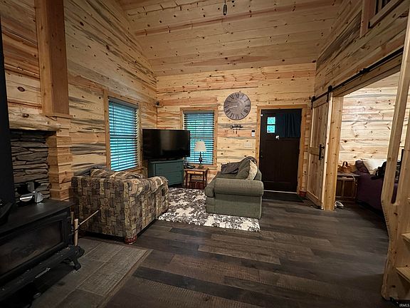 Beautiful cabin on almost 5 acres. Sharing a property line with Hoosier National Forest. You can choose to sit on the 8 x 28 open front porch and watch the deer and turkeys or sit inside with the wood burner and watch from the comfort of the couch either way it will be perfect. You will love hiking through the wooded trails and enjoy the breathtaking views as the seasons change. Home offers a fully appliance kitchen, full bath with large walk-in shower. Primary bedroom on main level and 2nd bedroom in loft area. New HVAC, engineered wood floors. Fiber optic wifi, alarm system, Washer & Dyer hookup. (some furniture could be included)