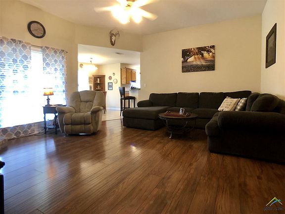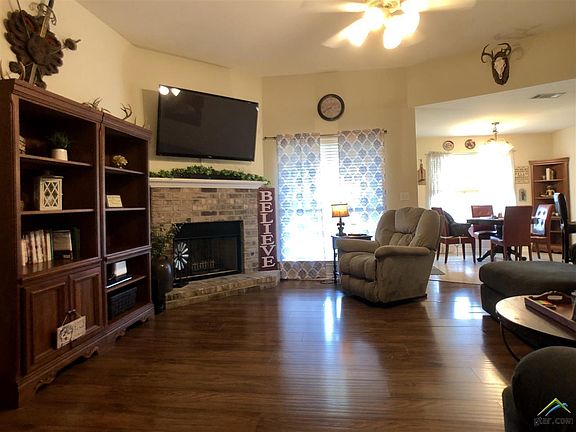 Beautifully maintained 3/2/2 in Running West neighborhood in Flint! Convenient to South Tyler shopping/dining and South Tyler Schools. Great family friendly neighborhood with a large fenced in back yard, and covered back porch. Fire pit in back yard does not convey. The master bath has a walk in shower, garden tub, split vanities, and two walk in closets. There is fresh paint in the bedrooms and hallway. A nice sized living room offers a fireplace with gas logs, and open concept to the kitchen and dining areas. The kitchen offers stainless steel appliances that are only 3 weeks old, a large walk in pantry, and new kitchen faucet. The air conditioning system was just replaced 2 weeks ago. Seller is willing to leave TV and mount in living room. Don't miss out on this gem!