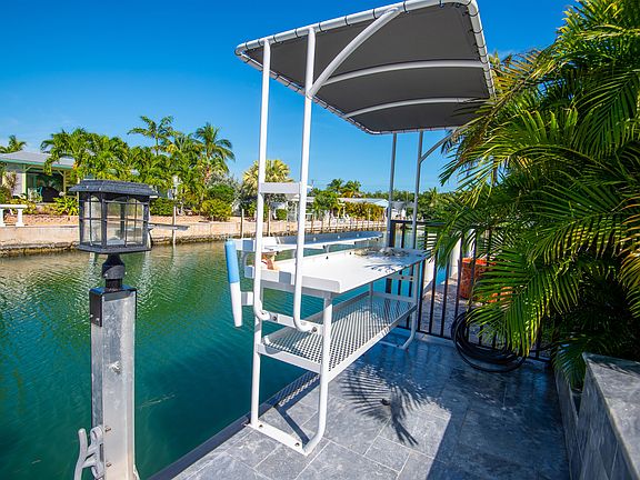 Welcome to your tropical paradise! This exquisite 4-bedroom, 3-bathroom waterfront home boasts a wide array of luxury amenities and a fully renovated interior that is sure to impress. As you step into this stunning property, you're greeted by an inviting open floor plan that seamlessly connects the living spaces. The beautiful kitchen, featuring stainless steel appliances, is a chef's dream, complete with a rare 6-burner Wolf gas stove with hood. Upstairs, the split floor plan offers privacy and comfort with 3 bedrooms and 2 bathrooms, while the downstairs includes an additional 1 bedroom and 1 bathroom suite. Great guest area or mother-in-law. Outside, the property doesn't disappoint with a dazzling pool area connected by a spiral staircase to an upper balcony where outdoor seating provides the ultimate vantage point for breathtaking Florida sunsets. The downstairs lanai invites you to dine al fresco, surrounded by gorgeous landscaping that includes a playful putt putt area and complete with a SWAT mosquito system. For boating enthusiasts, this home is a dream come true with 77 feet of dockage, a 20k boat lift, fish cleaning station, and both water and power available on the dock. The dock area is enhanced by a firepit, setting the stage for memorable evenings by the water. Additionally, the table outside the downstairs bedroom doubles as a firepit. The seawall is built on caprock and location offers quick access to both the ocean and the gulf. This home comes fully furnished, with some exclusions and personal items not included, allowing for an easy transition into your new coastal lifestyle or a turnkey solution if you choose to use the property as a vacation rental. There is a new standing seam metal roof and all new impact doors and windows. The meticulous renovation down to the drywall after purchase means every inch of this home has been touched with care and attention to detail. All the bells and whistles you could wish for in a luxury Florida Keys home!