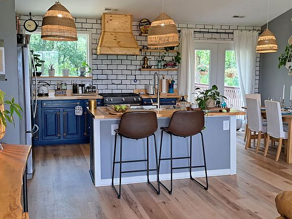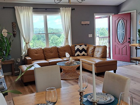 Escape to Hermann's Wine Country with this charming 3-bedroom, 2-bathroom home just minutes from downtown. Also great for families, it blends country cottage charm with modern style, featuring wood accents, barn doors, and a cozy wood fireplace. Outside, partly furnished, enjoy 4 acres with a gazebo, fire pit, and gas grill perfect for family/friends gatherings. The sun-drenched kitchen includes a large island. With a full master bath, spacious walk-in closet, and laundry room, this home is a retreat for relaxation and family fun in picturesque Wine Country.