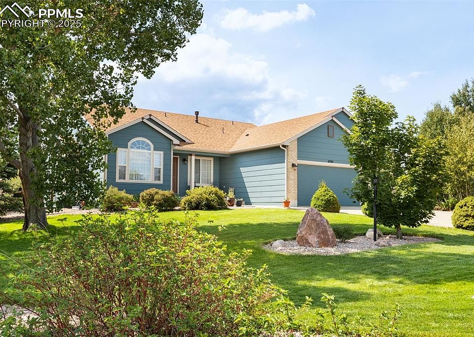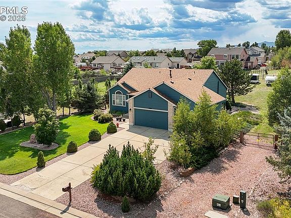 Welcome Home to this Stunning Rancher on a 1/2 Acre Treed Lot w/ NO HOA's!! Located w/in the quiet Paint Brush Hills Subdivision, this property offers over 3300 of Total Square Ft. for those larger families to spread out ~ Upon entry you walk into a relaxing living room & sitting area w/ an open concept floor plan ~ The vaulted ceiling provides enhanced spaciousness & ample natural light ~ The newly redesigned kitchen offers island seating, beautiful laminate countertops, newer stainless steel appliances, & hardwood floors ~ The kitchen walks out to an inviting backyard oasis w/ a large patio & lots of space for gardening, storage, outbuildings, or even RV parking/garage ~ The kitchen flows into a gorgeous dining room w/ a fireplace that's perfect for entertaining family & friends during the Holidays ~ The inviting primary bedroom connects to the primary bathroom w/ double vanities, large soaking tub, stand alone shower, lots of light, & a walk-in closet ~ Continuing on the Main Level are 2 secondary bedrooms for the kids or ideal office spaces for those remote workers ~ The Main Level Laundry is ideally situated upon entry from the 3 Car Garage ~ Downstairs in the Rec Room you'll find ample space for the media room, exercise room, office space, arts & crafts areas & 2 large bedrooms w/ a Full Bathroom ~ The 3 Car Garage is ideal for mechanics, auto enthusiasts, carpenters, hobbyists, etc.. ~ New Luxury Vinyl Flooring in all 3 Bathrooms & the Laundry Room ~ Newer Interior & Exterior Paint ~ Class IV Impact Resistant Roof installed in 2022 by Aspen Roofing ~ New Ceiling Fans Throughout the Home ~ Radon system in place ~ This home is absolutely beautiful & all that's left for the new Buyers to do is to move in ~ Located near Shopping, Restaurants, Parks, District 49 Schools, Antler Creek Golf Course, 21 min to Peterson AFB & 35 min to Schriever AFB, & 40 min to Fort Carson ~ Schedule Your Showing Today!!