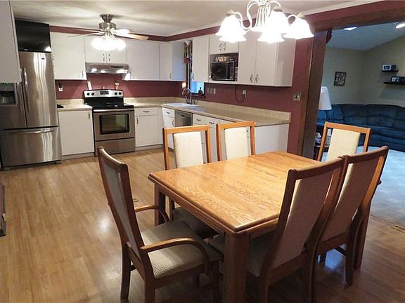 Great curb appeal! Spacious 5 bedroom, 3 full bath split entry featuring a first floor family room addition with cathedral ceiling and skylights; master bedroom addition with vaulted beamed ceiling, walk-in closet and full bath; eat-in kitchen with stainless steel appliances, white cabinets, neutral countertops and laminate hardwood floor, open to the living room and family room. The lower level includes a game room, laundry room, full bath and a 20x13 fully finished room beneath the master bedroom addition that can be a 6th bedroom, in-law suite or exercise room. Nice level backyard, 16x10 covered concrete patio, wrap around deck, 2 car integral garage with concrete driveway and a 2 car attached garage (built in 2013) with a concrete driveway and finished interior. This home has 2 newer heat pumps, updated 200 amp electric service and includes a one year HSA Home Warranty.
