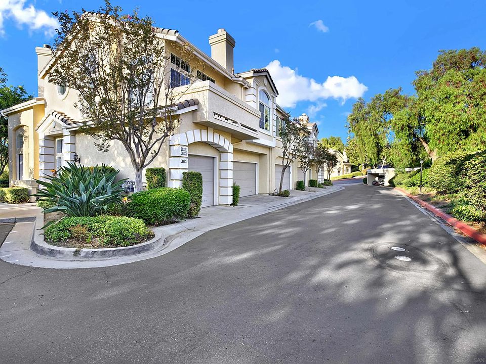 Welcoming, Bright 2BR/2BA corner-unit townhouse in the gated community of Provencal! Located within minutes of shops, eateries, freeway access, and golf courses in the Carmel Mountain Ranch region of Rancho Bernardo Two separate balconies - off the living room and master retreat with MOUNTAIN VIEWS. Beautiful kitchen features stainless steel appliances, granite countertops, a breakfast bar. whole house has water filtration. Vaulted ceiling and gas fireplace in the living room and an abundance of windows with custom plantation shutters. Large master suite with walk-in closet. Travertine tile flooring throughout with nice vinyl in the bedrooms. Full size washer and dryer in the laundry room. Plenty of storage in the attached 2 car garage.