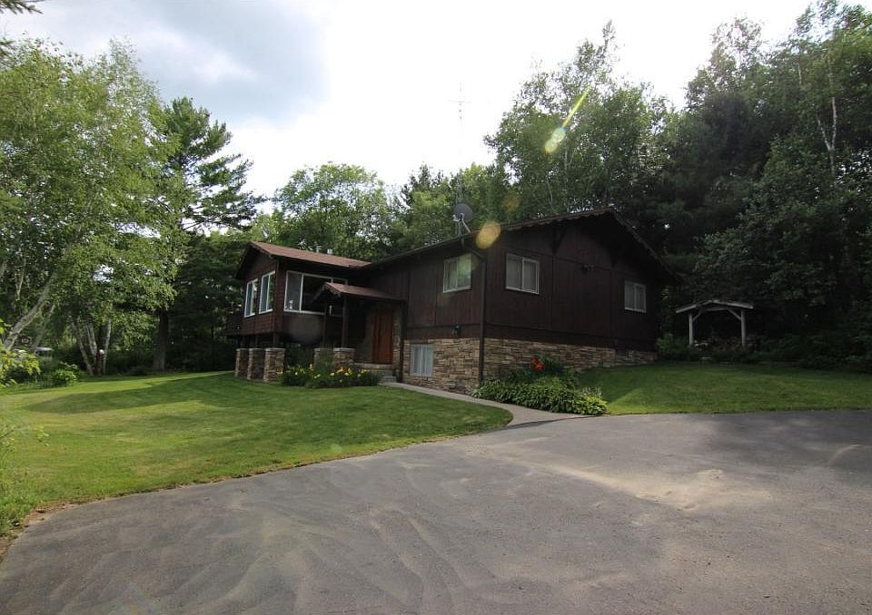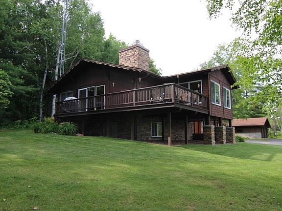 Chippewa Flowage catch of the day! 230 feet of level sandy frontage and 1.24 acres of wooded privacy. Home features: stacked stone fireplace, knotty pine and log beam interior, four season porch with sweeping views, spacious kitchen with granite countertops, three bedrooms and three baths, sauna, finished lower level with freestanding wood stove, impeccably maintained, detached two car garage and natural landscaping. Enjoy the wonders on the shores of the Big Chip!