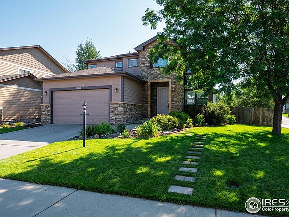 Welcome to this stunning 2-story home perfectly situated on a quiet corner lot in the desirable Oak Meadows community. From the moment you arrive, the dramatic stone entry & 8-ft front door set the tone for the craftsmanship & detail found throughout. Step inside to a grand foyer w/ soaring 2-story ceilings & a wall of windows that fill the home w/ natural light. The open layout flows seamlessly into a private formal dining room & an expansive kitchen-family room combination designed for entertaining. The gourmet kitchen is a chef's dream featuring a large island, granite countertops, knotty alder cabinetry with 42-inch uppers, black stainless steel appliances & a farmhouse sink. Gather in the spacious family room anchored by a tiled gas fireplace or take advantage of the oversized laundry room w/ ample storage. Engineered hardwood floors (only 2 years old) add warmth & style to the entire main level. Upstairs, retreat to the luxurious primary suite w/ double-door entry, cozy gas fireplace, a 5-piece spa bath w/ jetted tub & a large walk-in closet. Two additional generously sized bedrooms provide comfort & flexibility. The unfinished basement w/ rough-in plumbing offers endless potential for future expansion & great storage space! Step outside to a fully fenced yard w/ a dedicated dog run, mature trees & a extended patio adorned w/ English ivy. The oversized finished 2-car garage includes 220V service, service door & plenty of room for storage & for all of your toys! Nestled in between access to 2 parks- enjoy community amenities just around the corner! These amenities include open space, playgrounds, picnic spaces, courts for tennis, basketball, volleyball & baseball. Conveniently located near I-25, shopping & dining & just 4 miles to St. Vrain State Park w/ ponds, trails, camping & amazing views of Long's Peak. Recent updates include interior paint & blinds! This home blends comfort, style & function in an unbeatable location. NO METRO DISTRICT! Don't miss this!