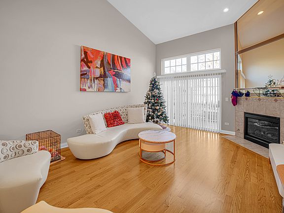 Must see this beautifully appointed townhome in the Courtyards of Orland. Tastefully decorated this 3 bedroom, 2 1/2 bath with full finished bsmt will not disappoint. Main floor has large open floor plan. Beautiful kitchen with granite counters, stainless appliances, island with plenty of room for stools and entertaining. Living room with 2 story ceiling, fireplace wall with custom mirrors, beautiful hardwood floors, MAIN FLOOR primary bedroom, powder room, pantry closet and laundry. Head up stairs beautifully done with hardwood treads and updated rails and balusters. You'll find 2 bedrooms, full bath and loft area with skylights perfect for quiet reading or home office. Basement has finished family room and plenty of space for storage. This home is SPOTLESS and ready to move in to.