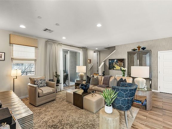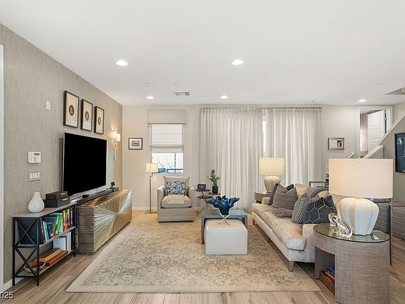 Located across from Downtown Summerlin, this exceptional home was professionally designed with luxury finishes and custom window treatments and lighting throughout. The open floor plan boasts a sleek and stylish design, featuring private en suite bedrooms, a spacious chef’s kitchen and ample entertainment space. This unit also includes an outdoor deck and a dedicated tandem 2-car garage. Affinity residents enjoy exclusive amenities, including two sparkling pools, a modern clubhouse, a fitness center, and beautifully manicured common areas. The community’s prime location offers easy access to shopping, dining, and recreational activities, blending suburban tranquility with urban excitement. This is the perfect property for someone looking to reduce the size but not the style of their home or for someone looking for an elegant pied-a-terre in Las Vegas.