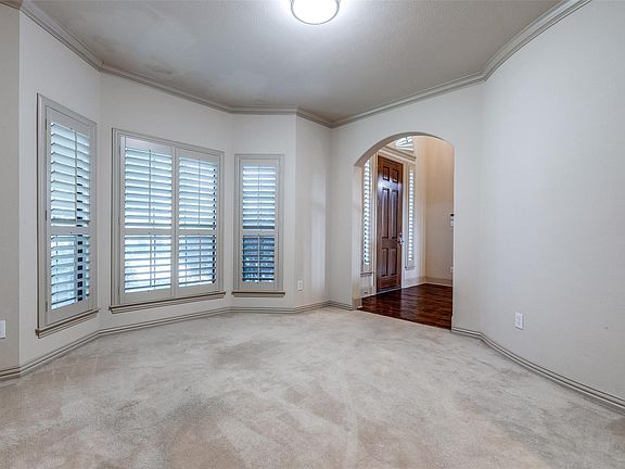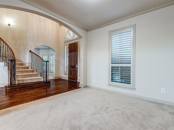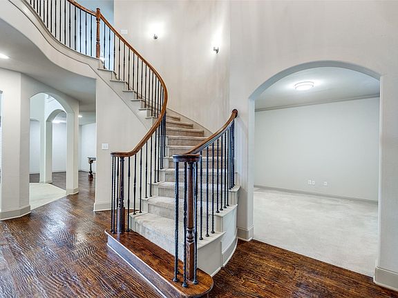 Beautiful traditional home located in the prestigious Shaddock Creek Estates in Frisco ISD. Hand scraped hardwood floors arched entryways and an elegant spiral staircase welcome you. The spacious kitchen features granite counters, SS double ovens, microwave and dishwasher, rich wood cabinetry, butler's pantry and is plumbed for gas. It is open to the living area which has a gas fireplace, built ins, 2 story soaring ceilings, Plantation shutters and an abundance of natural light. A coveted feature is a guest bedroom and full bath on the first level. The primary suite has a sitting area,