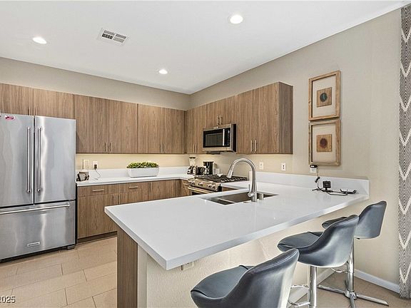 Step into this stunning former model home a turnkey, fully furnished 2-bedroom, 2.5-bath residence designed for comfort and style. Enjoy expansive living spaces with two private decks one off the great room and another off the primary suite perfect for morning coffee or evening relaxation. The home is loaded with high-end upgrades, including power shades, sleek quartz countertops, and premium stainless steel KitchenAid appliances. A washer and dryer are conveniently included, and the spacious 2-car tandem garage adds plenty of storage. Indulge in resort-style community amenities: Sparkling outdoor pool and spa State-of-the-art fitness center Cozy fire pit lounge Outdoor barbecue terrace for entertaining Located in the heart of Summerlin, this condo offers luxury, convenience, and an unbeatable lifestyle.