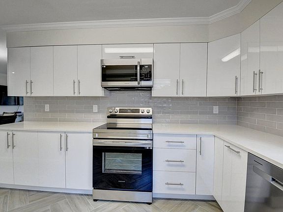 Beautifully renovated 2nd floor corner unit, located in the desirable Green Lakes section of the Indian Spring Country Club, offering serene golf course views and modern upgrades throughout. No detail was overlooked in this renovation. Country Club membership is optional, NOT mandatory. The home boasts beautiful tile flooring throughout, along with high-end finishes that elevate the space. Every inch has been meticulously updated to provide a contemporary, comfortable living experience. The kitchen has been opened up to create a spacious, airy feel and features white high-gloss cabinets, stunning quartz countertops, and stainless steel appliances, perfect for both cooking and entertaining. Both bathrooms have been thoroughly updated with stylish new vanities, offering ample storage space, walk-in showers with glass barn doors, and elegant tiled walls. Washer and dryer located inside the unit for ultimate convenience. Unit can come furnished or unfurnished.