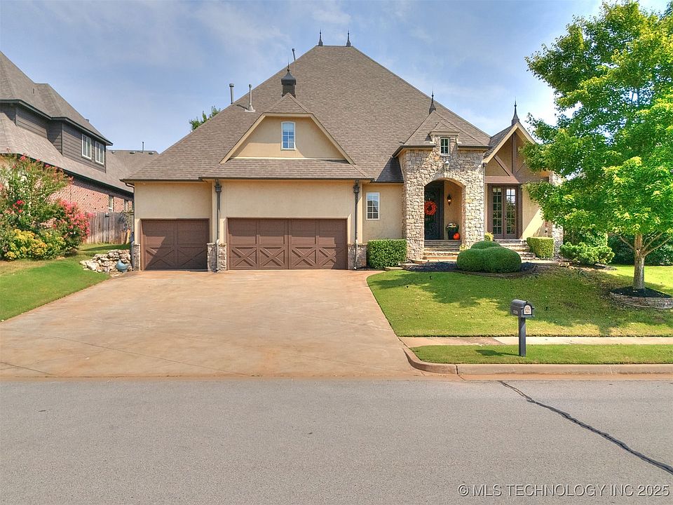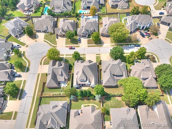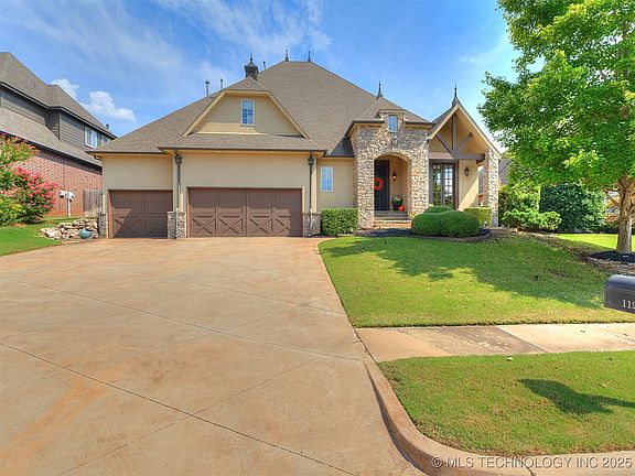 Luxury home in the private Woodcreek community of Bixby, ideally located near Costco, Walmart, shopping, and restaurants. This residence features soaring ceilings, hardwood floors, and a wrought iron and glass entry. Highlights include a private office with its own entrance, a dream kitchen with a 12-foot double-thick granite island, and a luxury primary suite with spa bath and walk-in closet. Upstairs offers a theater/game room, wet bar, hobby room, and optional fourth bedroom. High-end finishes throughout, including Family Safe/built-in storm. Community pool, clubhouse, and Bixby Schools complete the package. Motivated Seller.