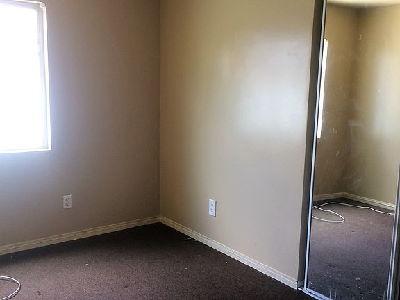 House features large driveway AND a two car garage. One of the bedrooms features a faux fireplace and private entry and small private patio. Large granite breakfast bar separates the living room and the kitchen. Every bedroom has mirrored doors.