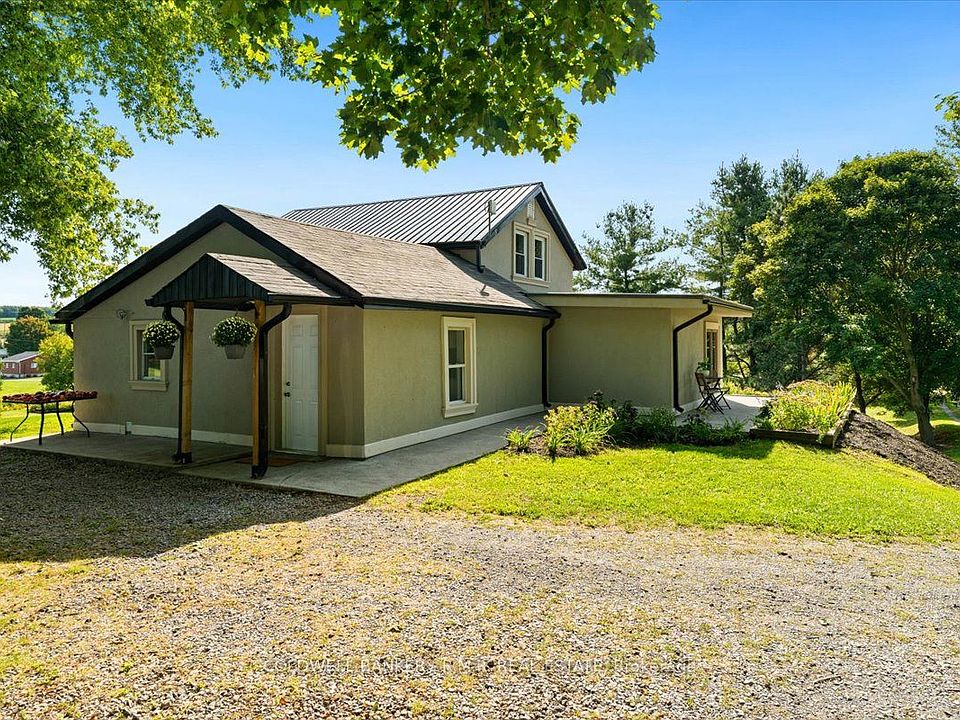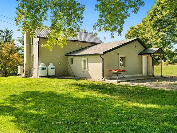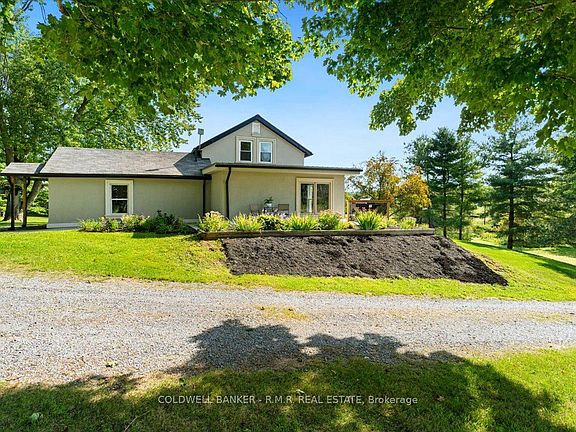 Step into this beautifully updated century home, tucked away on a gorgeous 7.5-acre country property that blends charm with practicality. Surrounded by nature and set up for rural living, the land comes with a barn, shed, and horse paddock-perfect if you're into riding, farming, or just want space to roam. A peaceful stream winds through the property, adding a touch of storybook magic to the setting. Inside, the detached home has been completely renovated but still holding onto its timeless character. The open-concept living and dining area is warm and welcoming, with fresh flooring throughout and an electric fireplace that makes it feel extra cozy. Just off the dining room, a huge new deck stretches out into the backyard and fire pit, ideal for summer BBQ's, morning coffee, or simply kicking back and enjoying the view. Speaking of views every window looks out over your own land, so whether you're gazing at the paddocks, the stream, or massive mature trees in your own yard, you're always connected to the beauty around you. The home features three roomy bedrooms and two full bathrooms, plus a bright, modern kitchen with new appliances. Recent updates include windows, exterior stucco, a new gas furnace, metal roof, and eavestroughs; so it's not just beautiful, it's built to last. Whether you're dreaming of a quieter lifestyle, a place for your horses, or just move -in-ready home with space to breathe, this property offers a rare mix of comfort, character, and country living.