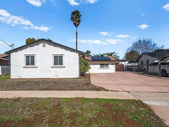AMAZING property to own a GORGEOUS 4 bedroom, 3 bath home in ENORMOUS 10,500 square foot lot!!! PLUS an OVER-SIZED 2 car finished garage! It features 4 bedrooms and 3 bathrooms within 1,558 square feet of living space, situated on a 10,500 square foot lot, perfect for ADU. This property boasts a variety of fruit-bearing trees, including avocado, lime, orange, pomegranate, olive, chili, and kalamansi, which can be a cost-effective feature. The home includes an oversized two-car finished garage with finished walls, New tile floors, and recessed lighting, offering potential for conversion into an accessory dwelling unit (ADU). Additional amenities include RV parking, air conditioning and furnace, painted interior (including kitchen cabinets and vanities), new luxury vinyl flooring, new mirrored closet doors, and a primary bathroom with a large jetted tub and separate shower. The property also features 24 SOLAR PANELS and can lead to significant costs savings. It is located on a quiet and private street within walking distance to shopping malls, parks, lakes, and a desirable charter school. The Escondido Civic Center, offering art and performances, is also nearby. The property is approximately 18 miles from the beach. HURRY WON'T LAST!!! CALL TODAY!!!