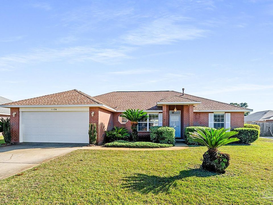 Well maintained brick home on a spacious lot in The Estates of Emerald Shores. You will enjoy the split floor plan of this residence. All the common areas of the home feature lovely travertine tile, with brand new carpet in the bedrooms. Freshly painted throughout and ready for new owners to move in. This house comes with a whole home generator. A completely fenced in backyard, a pergola over the patio, and lush grass and greenery provide a private oasis that is perfect for Sunday barbecues and a Blue Angel flyover. This property is in a phenomenal location, just a couple of miles from N A S Pensacola, twenty minutes to downtown, and within close proximity to the beautiful white beaches of Perdido Key.