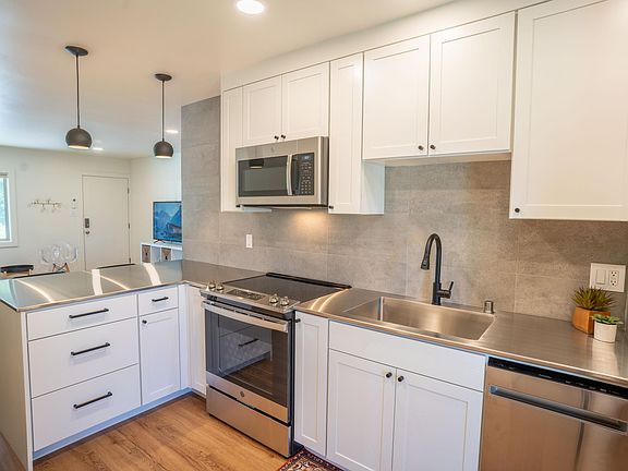 *Pending lease which has gone out for signatures* Completely reimagined and rebuilt apartment in the Garden Tract, only two blocks from downtown Redding! Walk to Evergreen or Theory Coffee, Roots Juice Bar, From the Hearth, Taste&See Creamery, Turtle Bay, and the Sacramento River Trail. Eight-unit, single-story apartment building taken down to the studs and rebuilt in 2020. Every finish from top to bottom is new including roof, insulation, windows, paint, flooring, recessed LED lighting, hot water heater, heating/air conditioning, kitchen cabinets/appliances, bathroom tub/vanity, toilet, lighting, and more! Modern design aesthetic featuring stainless steel counters w/deep, integrated sink, matte black pendant lights and matching pull-out kitchen faucet and cabinet hardware, new stainless appliance package w/glass top slide-in range and a dishwasher. New mini-split units in living room and bedroom for year-round comfort and efficiency, blackout shades and ceiling fan in the bedroom, luxury vinyl plank flooring throughout. Spacious and private east-facing concrete patio in back allows ample room for BBQ unit and patio table/chairs, extending living space. Dedicated parking directly in front of unit. Please note: pictures shown are from when this unit was furnished. This listing is for an unfurnished unit. Available: June 1 Terms: 12-month lease $1350/month + $1350 security deposit Owner may consider one small, well-behaved pet w/additional pet deposit of $500 and $50/pet rent Please apply through Zillow, no showings prior to application/credit/background checks. Please do not disturb current tenants. Owner pays water, garbage, free high-speed internet (wifi connection only)+ free shared laundry room usage. Tenant pays electric and sewer (approx. $100/month) No satellite dishes or cable along building will be allowed.