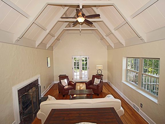 One of a kind exquisite French Norman-style home with modern updates. Entry boasts marble/slate mosaic flooring & a spiral staircase. Sunken living room features beautiful cathedral beamed ceiling, gas fireplace, stained glass windows & French glass doors that lead to side slate patio. Built ins, hardwoods, new windows & fresh neutral paint throughout. Gourmet chef's kitchen with walnut cabinets, tumbled marble centerpiece, a custom brass hood stove, marble backsplash, stainless appliances incl brand new fridge with wine rack. Master bedroom has large closets and an en-suite with marble tile & walk-in shower. Finished basement has a private additional suite or family room with full bath. Rear deck overlooks level and tiered yard with brand new landscaping & a 20x40 ft in-ground pool! New gutters, digital thermometer, new A/C, new fence and so many more updates make this gorgeous home too good to miss! An entertainer's delight. Seller's are offering a home warranty.
