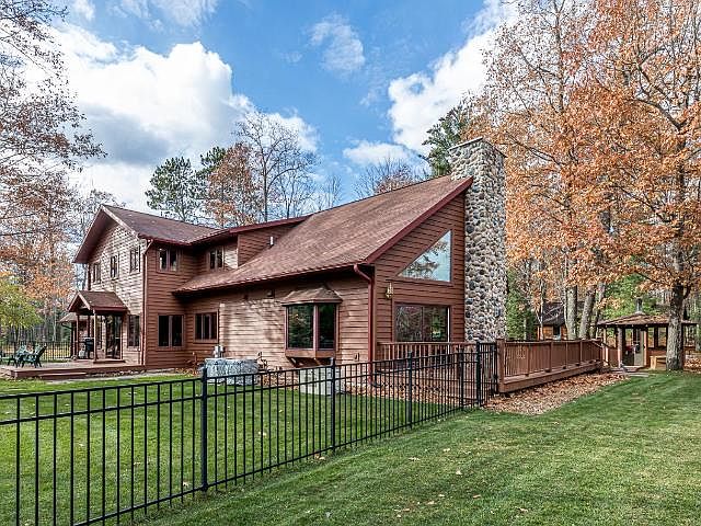 St. Germain Perfection! Quality custom-built 4 Bed, 4.5 Bath, cedar-sided home overlooks the private waters of Hiawatha Lake plus shared 50' easement access to Lt St Germain Lk. Convenient location just a minute from St. Germain's shops, dining, landings, & trails. Impressive list of features: Soaring cathedral Great Room w/ lake views & gas FP, spacious chef's kitchen w/ granite & custom cabinets w/new luxury vinyl in kitchen/dining, walk-in closets in every bedroom, hardwood floors throughout, fenced yard, 2 relaxing decks, main floor laundry, insulated attached 2 car w/ epoxy floor, new detached 2 car for toys, custom gazebo w/ wood stove, lush lawn & fresh landscaping, paved drive, custom shades, recently finished lower level, new exterior stain, storage & space galore! Mechanicals include 2 natural gas furnaces w/ central air, whole house generator, newer septic, new security lights & more. There can only be one lucky owner, better get after this one!