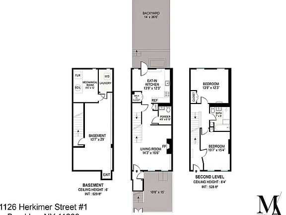 Make this charming 2-bedroom, 1.5-bath duplex with a private backyard your next home in Ocean Hill. Spanning approximately 1,585 square feet, including the private basement, this residence offers a thoughtfully designed layout that combines modern finishes with classic Brooklyn character. The garden level features a spacious living room with a decorative fireplace and a separate eat-in kitchen outfitted with custom white cabinetry, stone countertops, stainless steel appliances including a dishwasher, and a tile backsplash. A half bath and direct access to the private 737-square-foot backyardideal for outdoor dining or entertainingcomplete this level. The private basement, accessible directly from the garden floor, provides additional storage and includes the in-unit washer/dryer for added convenience. Upstairs on the parlor level are two generously sized bedrooms, each with ample closet space, along with a full bathroom featuring modern fixtures, sleek tiling, a deep jetted soaking tub, and a separate glass-enclosed shower. Conveniently located near the A/C trains at Rockaway Avenue, this home offers easy access to local favorites such as Cuts & Slices, Beets Cafe, Trad Room, Olmo, and Daily Press Coffee & Bar. A refined and spacious home in one of Ocean Hill's most connected locations. Pets permitted on a case-by-case basis.