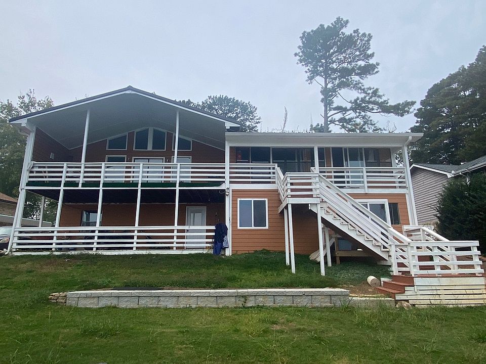 TREMENDOUS OPPORTUNITY ON THE WATER! Breathtaking views overlooking Lake Tara! Located directly across from the Marina & restaurant. Situated in a primetime location to watch 4th of July fireworks directly across the lake from your back deck or brand new dock. Bring your builder or contractor and your vision, this home is ready to become your dream home. Perfect opportunity to customize, and completely remodel to your tastes. Featuring a BRAND NEW covered 1 slip boat dock with attached party deck, all made with composite decking material. The interior features 2 bedrooms and 2 bathrooms on the main level, a large sunroom off the back with exterior access and stairs leading to the backyard. The lower level has additional finished adding 2 additional bedrooms and 2 more full bathrooms. The sky is the limit with potential bursting at the seams with this house. Welcome Home!